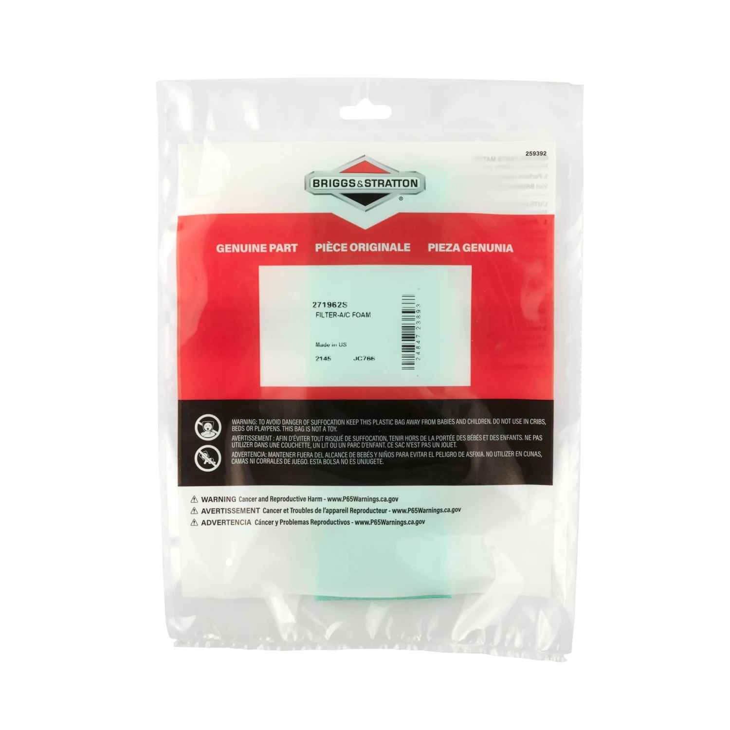 - Air cleaner compatible – 399806S, 491519