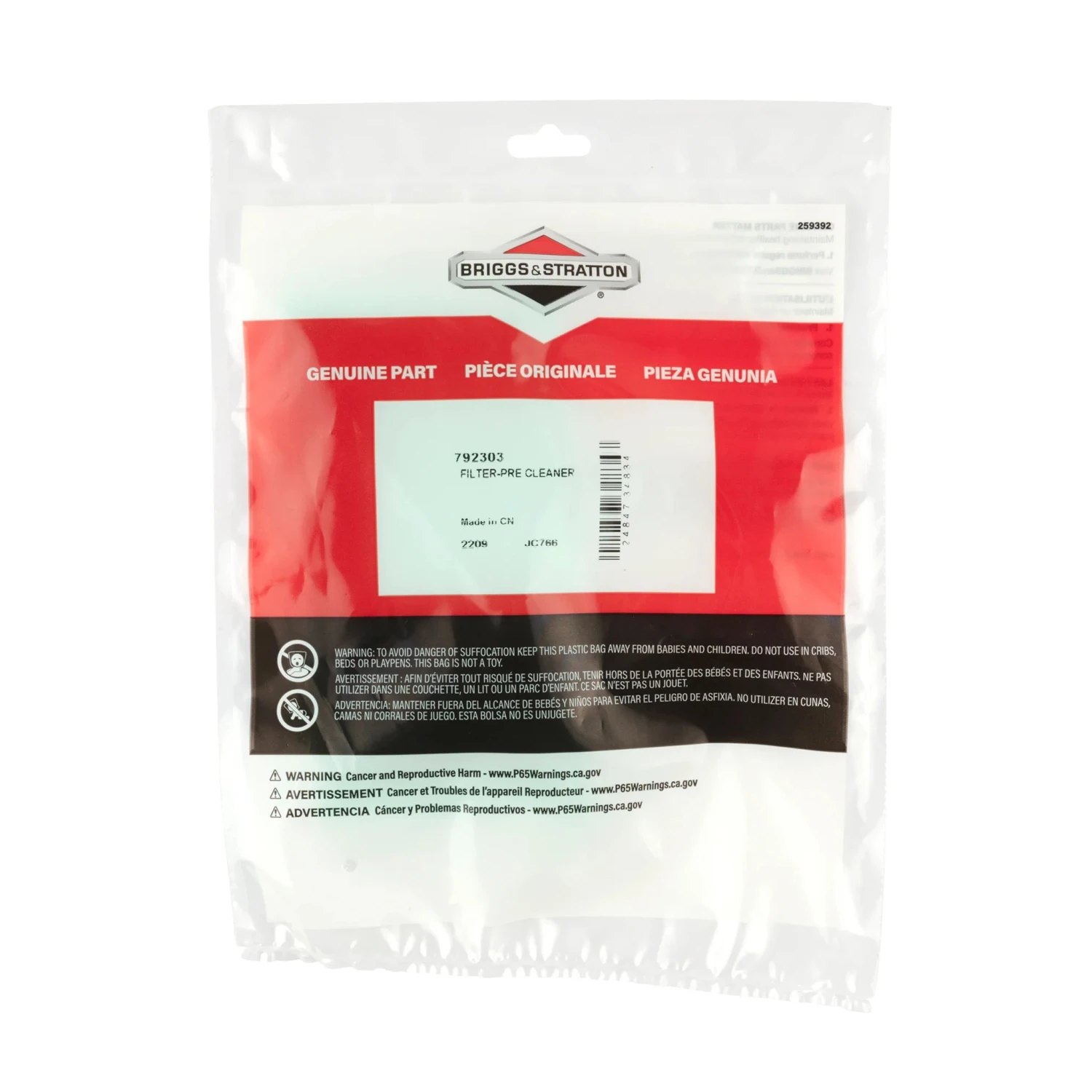 Genuine Briggs & Stratton wrap Style, foam pre-cleaner.